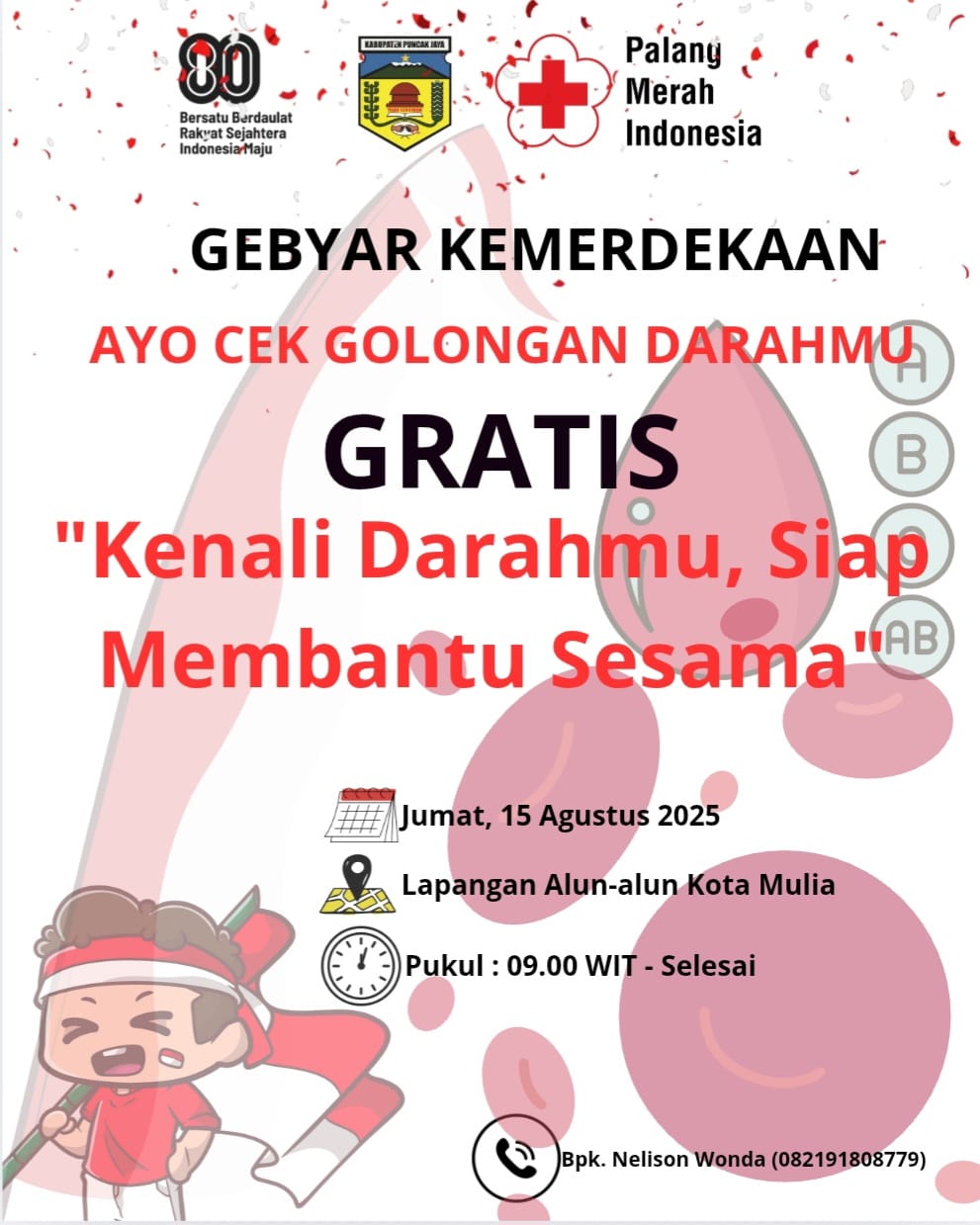 Hadirilah Pemeriksaan Darah Gratis dalam Kirab Merah Putih Hari Jumat Tgl 15 Agustus 2025