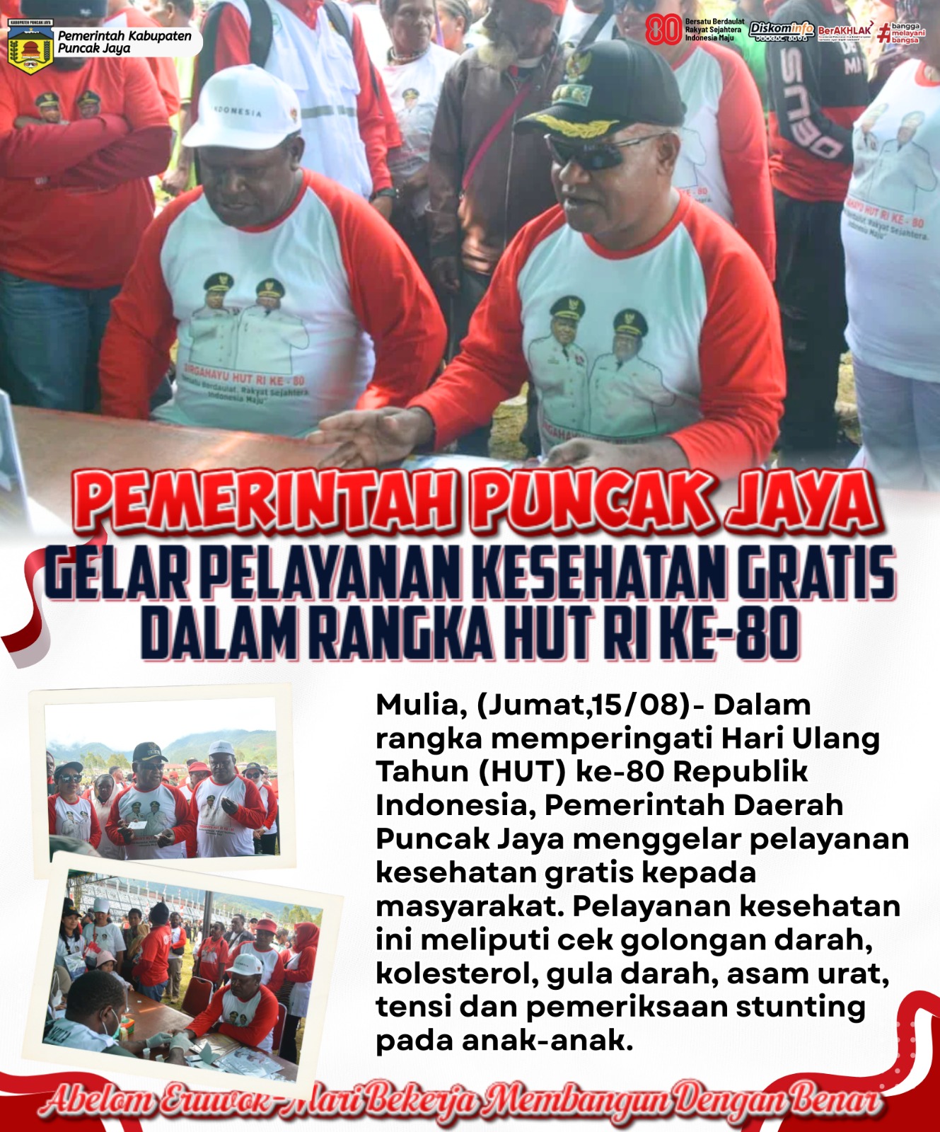 PEMERINTAH PUNCAK JAYA GELAR PELAYANAN KESEHATAN GRATIS DALAM RANGKA HUT RI KE-80