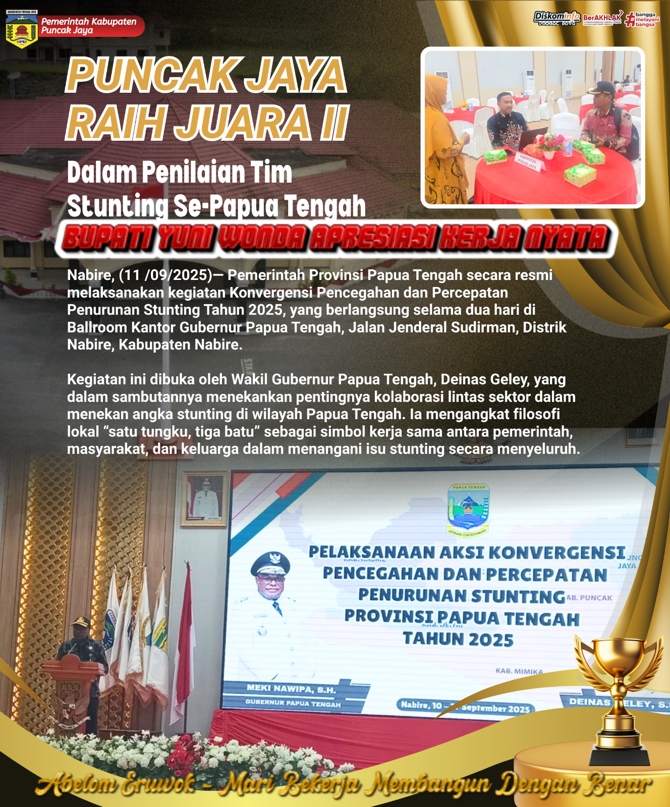 PUNCAK JAYA RAIH JUARA II Dalam Penilaian Tim Stunting Se-Papua Tengah BUPATI YUNI WONDA APRESIASI KERJA NYATA