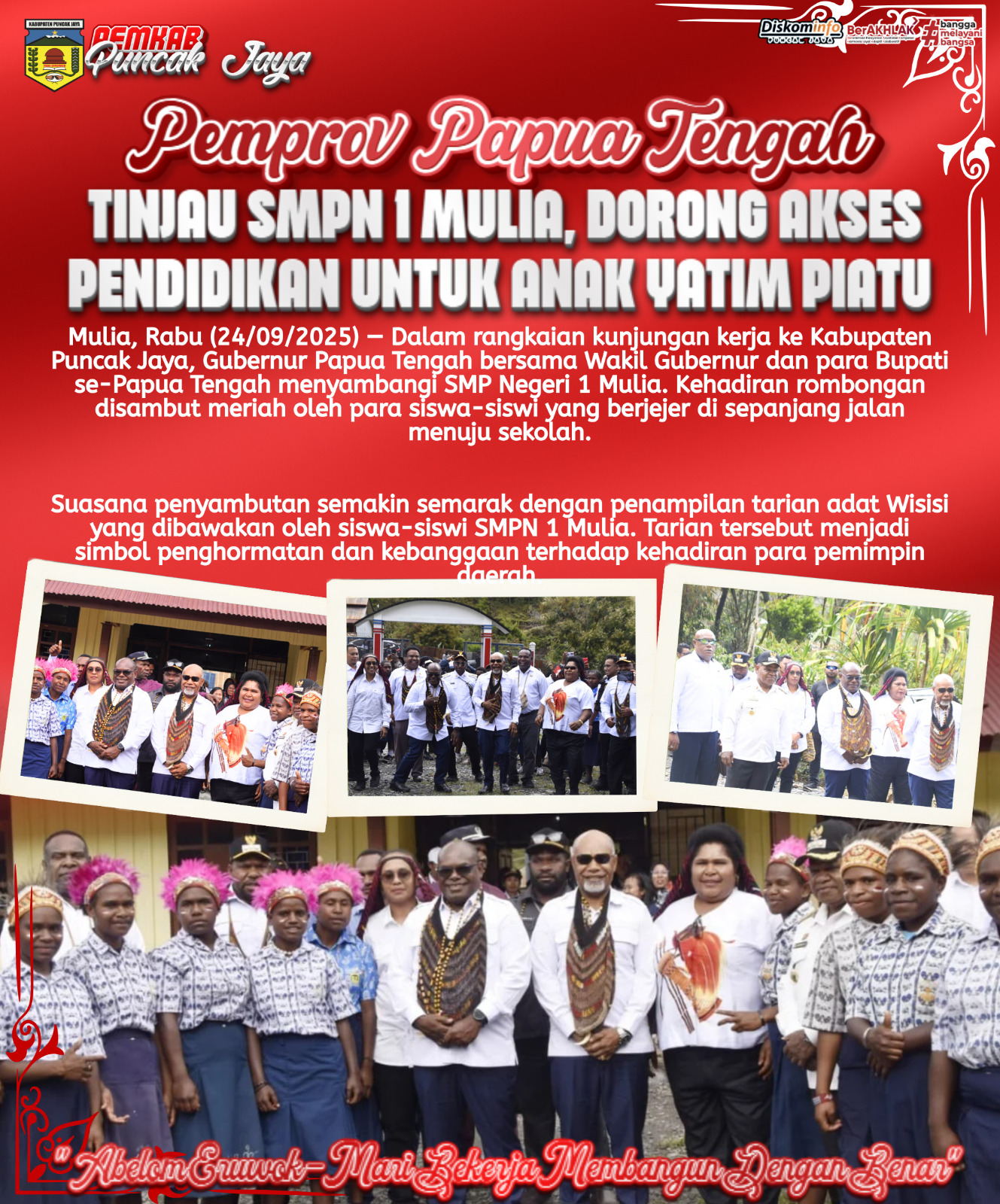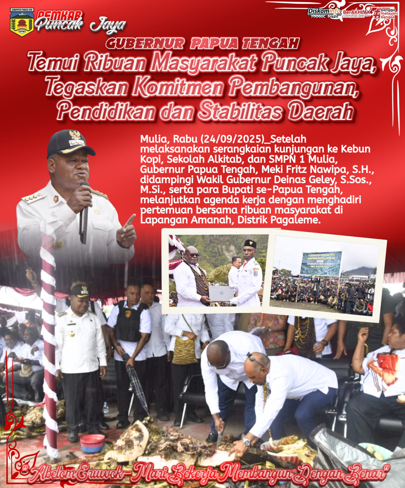 Mulia, Rabu (24/09/2025) - Gubernur Papua Tengah, Meki Fritz