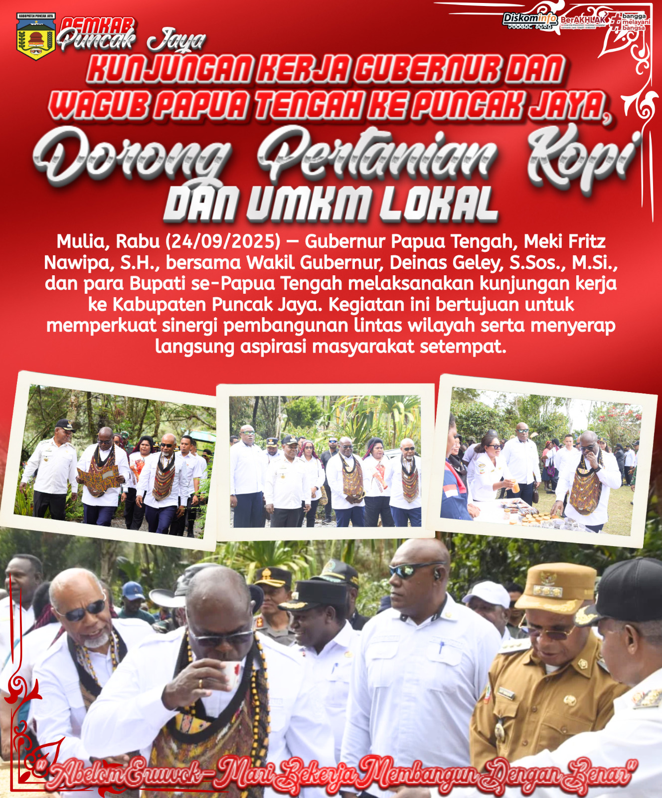 KUnJUnGAN KERJA GUBERNUR DAN WAGUB PAPUA TENGAH KE PUNCAK JAYA, Dorong Pertanian Kopi Dan UMKM LOKAL