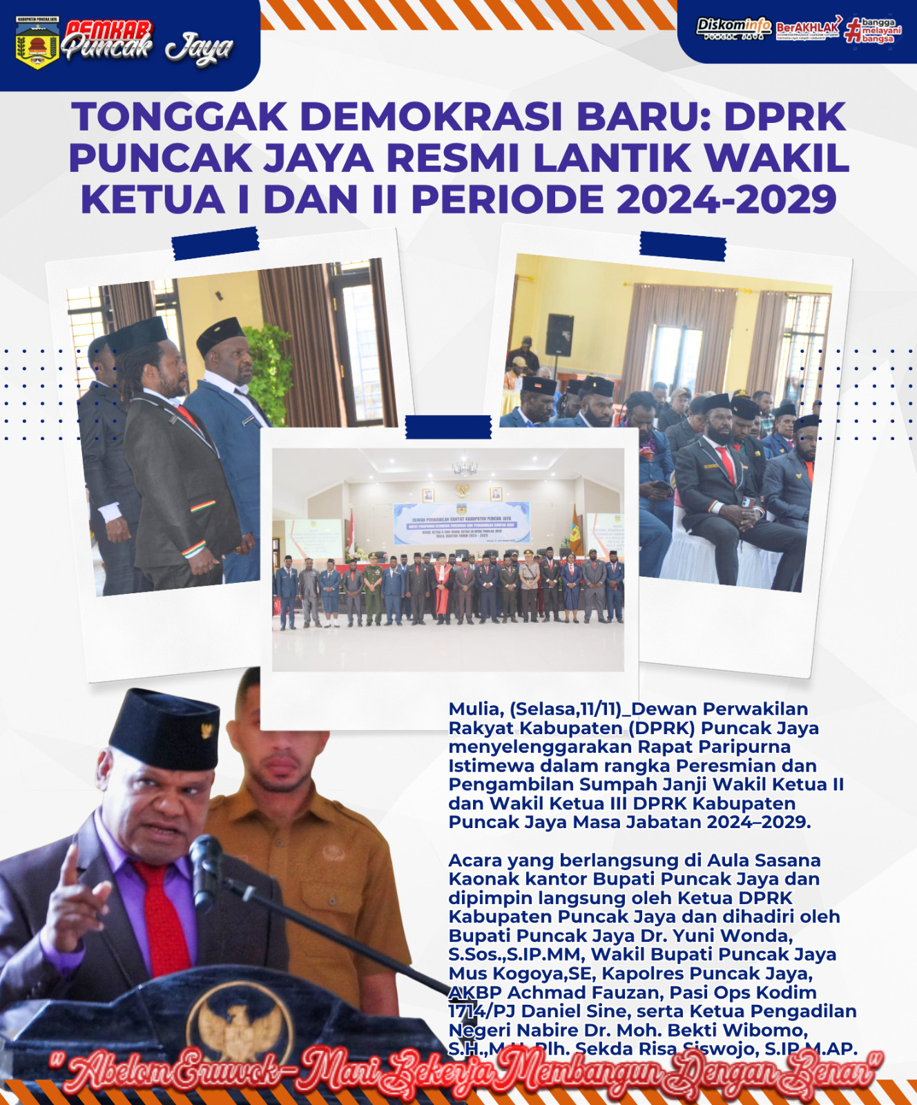 TONGGAK DEMOKRASI BARU: DPRK PUNCAK JAYA RESMI LANTIK WAKIL KETUA II DAN III PERIODE 2024-2029